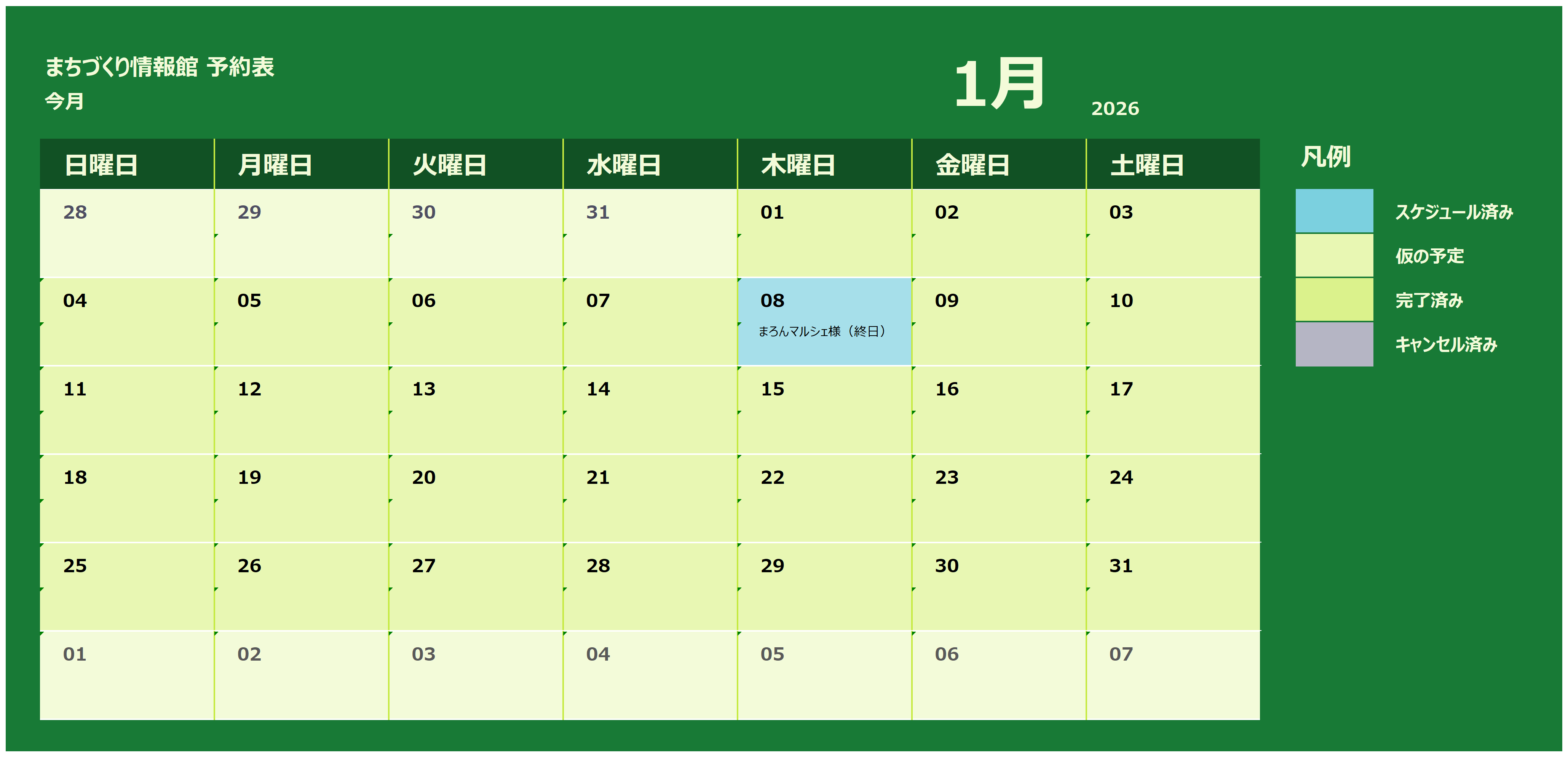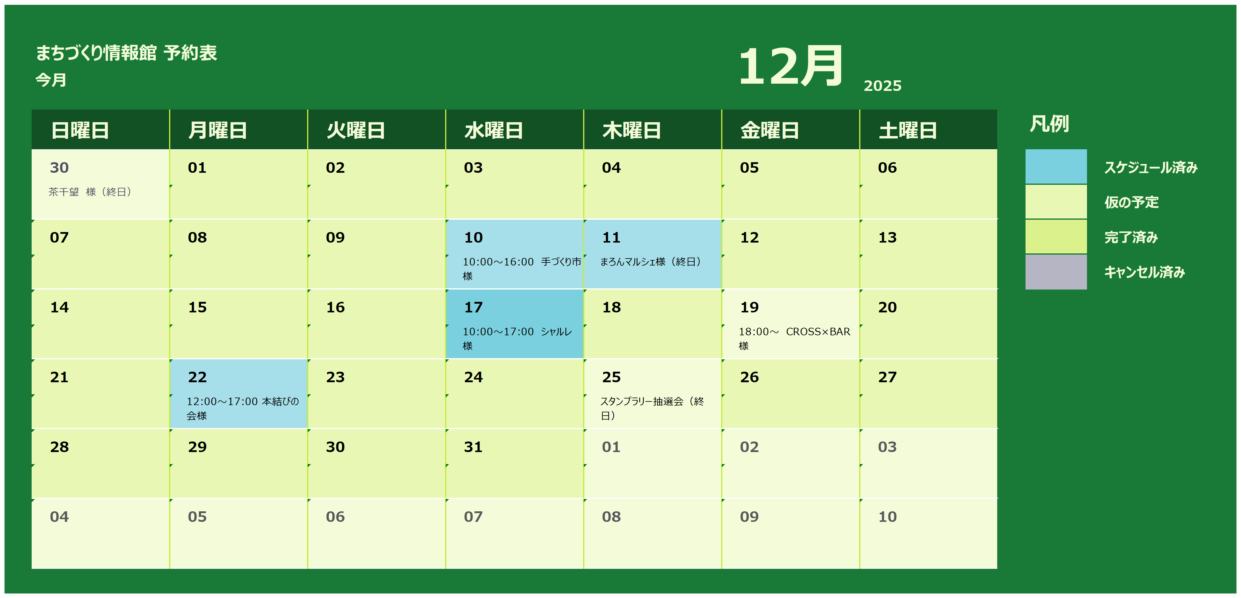 当月より、3ヵ月間のイベント情報(利用予定)を掲載しています。